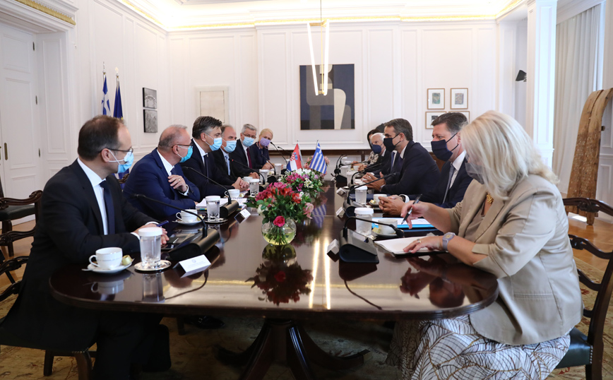 Με τον πρωθυπουργό της Κροατίας, Αντρέι Πλένκοβιτς, συναντήθηκε σήμερα ο πρωθυπουργός, Κυριάκος Μητσοτάκης, στο περιθώριο της 8ης Συνόδου Κορυφής EUMED, που διοργανώνεται στην Αθήνα.