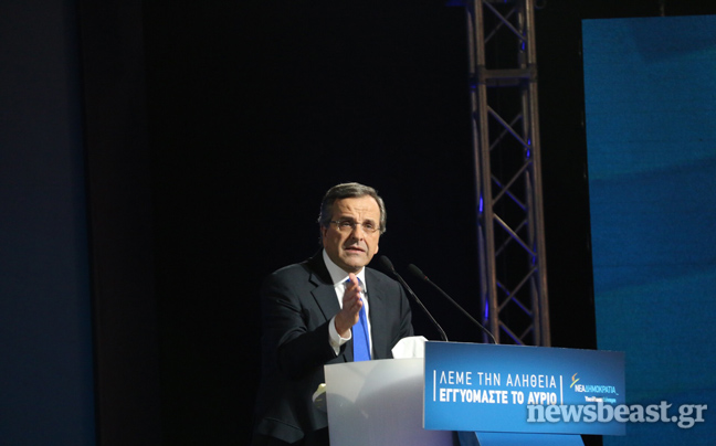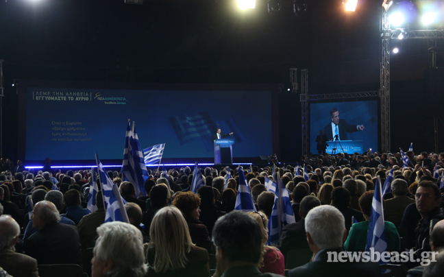 «Πριν από δυόμισι χρόνια ανέλαβα πρωθυπουργός σε μία χώρα σε βαριά καταιγίδα. Ότι έκανα το έκανα μαζί με τους συνεργάτες μου για έναν λόγο για να έχει ελπίδα η ελληνική νεολαία. Έξω από την χώρα αντιμετώπιζα την καχυποψία όλων και μέσα στην χώρα την υπονόμευση εκείνων που τώρα το παίζουν τιμητές. Δουλέψαμε νύχτα μέρα για να κρατήσουμε την πατρίδα όρθια. Θα μπορούσα και εγώ να τάξω αλλά που θα ήταν η Ελλάδα μετά. Γι αυτό και βήμα βήμα η χώρα στάθηκε στα πόδια της, βάλαμε τα θεμέλια της ανάπτυξης και μίας πραγματικής ελπίδας. Εξαλείψαμε τα ελλείμματα, η ανάπτυξη άρχισε, έρχονται επενδύσεις, η οικονομία παίρνει μπροστά, το εισόδημα αυξήθηκε το τελευταίο τρίμηνο. Η χώρα σταθεροποιείται, αποκαταστήσαμε την αξιοπιστία μας και τώρα τα τίναξαν όλα στον αέρα και έσυραν την χώρα σε εκλογές. Ξαναέφεραν την οικονομική και την πολιτική αβεβαιότητα. Απειλούν να τινάξουν την χώρα στον αέρα. Αλλά το ατύχημα Τσίπρα δεν θα συμβεί δεν τους επιτρέπουμε να μας γυρίσουν πίσω. Οι πιέσεις που μπορούν να ασκηθούν είναι συντριπτικές. Πώς; με το να σταματήσουν την ρευστότητα, αυτό είναι το ατύχημα που δεν πρέπει να συμβεί. Συνέβη στην Κύπρο και υποχρεώθηκαν σε περιορισμούς στην κίνηση κεφαλαίων, δεν μπορούσαν να σηκώσουν χρήματα. Αυτό μπορεί να συμβεί τώρα στην Ελλάδα αλλά δεν θα αφήσουμε εμείς να συμβεί. Δεν έχουν ιδέα τί θα διαπραγματευθούν με ποιόν και πως. Αν η χώρα ζητήσει κι άλλα δανεικά θα του βάλουν κι άλλους όρους. Δεν θα αλλάξει ο ΣΥΡΙΖΑ την Ευρώπη αλλά θα μεταστρέψει όλη την Ευρώπη εναντίον της Ελλάδας. Γι αυτό την Κυριακή πάμε όλοι στην κάλπη. Μας φέρνουν σε ανάγκη δανεισμού και νέα μνημόνια» ανέφερε ο πρωθυπουργός.