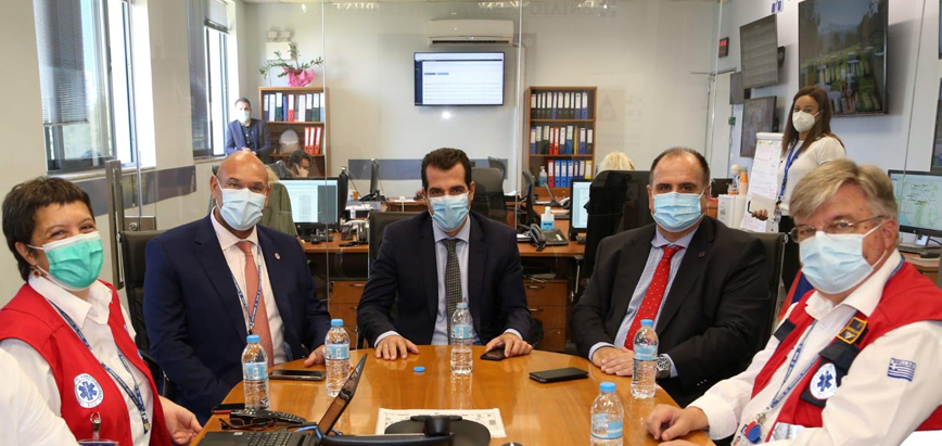 Το ΕΚΑΒ επισκέφθηκε σήμερα ο υπουργός Υγείας Θάνος Πλεύρης, όπου ενημερώθηκε από τον πρόεδρο του, Νίκο Παπαευσταθίου, για τον επιχειρησιακό ρόλο του Οργανισμού στη διαχείριση περιστατικών κορονοϊού καθώς και των επειγόντων περιστατικών σε πανελλαδικό επίπεδο.