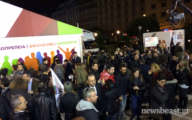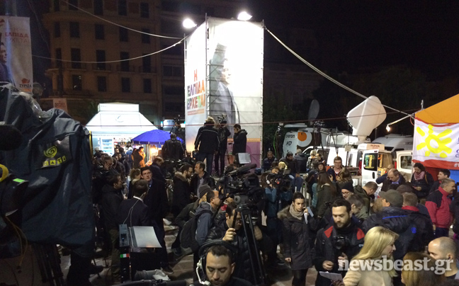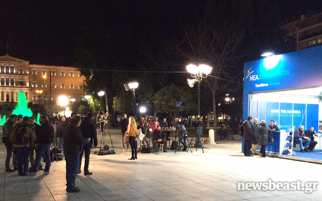 Ενώ απομένουν λίγα λεπτά για να κλείσουν οι κάλπες και να βγουν τα πρώτα exit polls για τις εκλογές, χαρακτηριστική είναι η εικόνα που συναντά κανείς στα κεντρικά προεκλογικά περίπτερα των ΣΥΡΙΖΑ, Νέας Δημοκρατίας και ΠΑΣΟΚ.