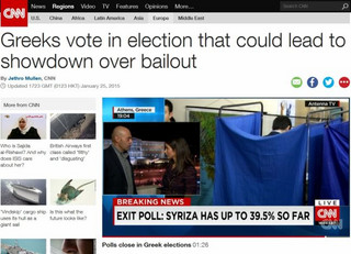 Πιο «ηχηρός» είναι ο τίτλος του πρώτου άρθρου στην ιστοσελίδα του CNN: «Τέλος στη λιτότητα;», ενώ το σχετικό άρθρο αναφέρει: «Οι Έλληνες ψήφισαν στις εκλογές που μπορεί να οδηγήσουν στον τερματισμό του προγράμματος χρηματοδότησης».