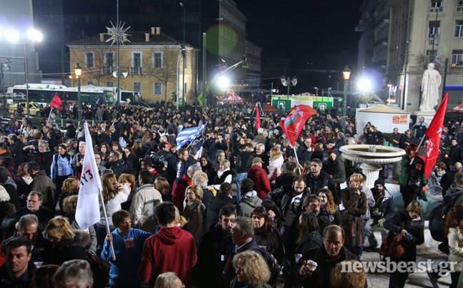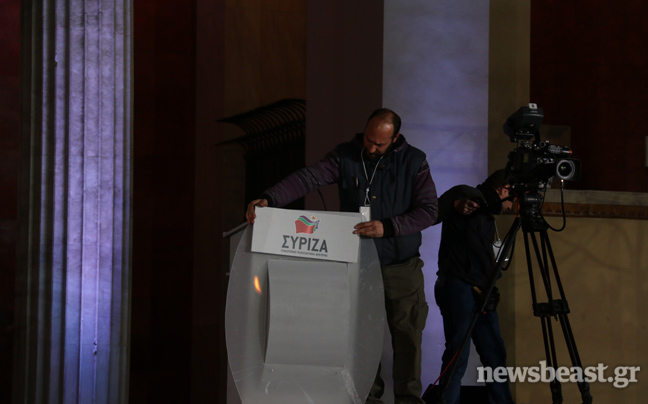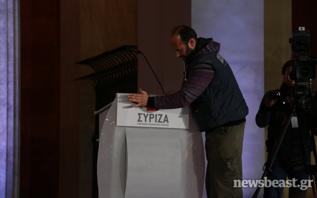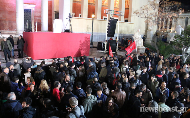 Νωρίτερα, στις 21:00 το βράδυ είχε γίνει δεκτός μέσα σε επευφημίες από πλήθος κόσμου και υποστηρικτών του ΣΥΡΙΖΑ στα γραφεία του κόμματος στην πλατεία Κουμουνδούρου.
