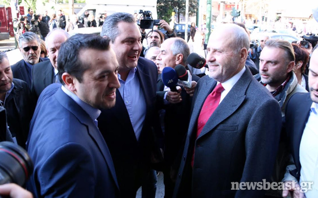 Στα γραφεία του ΣΥΡΙΖΑ στην Κουμουνδούρου έφτασε πριν από λίγη ώρα ο Αλέξης Τσίπρας, ο οποίος θα έχει συνάντηση με τον πρόεδρο των Ανεξάρτητων Ελλήνων. Λίγα λεπτά μετά τον κ. Τσίπρα, έφτασε στην Κουμουνδούρου και ο Πάνος Καμμένος.
