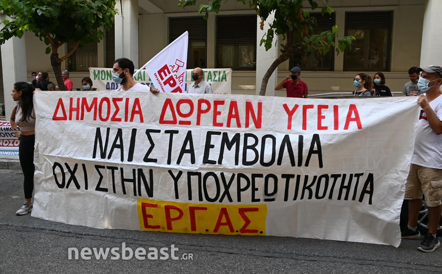 Η Ομοσπονδία πραγματοποίησε σήμερα συγκέντρωση διαμαρτυρίας έξω από το υπουργείο Υγείας στο πλαίσιο στάσης εργασίας, ζητώντας την άρση της αναστολής καθηκόντων των ανεμβολίαστων επαγγελματιών υγείας που έχει ως αποτέλεσμα, όπως αναφέρει, «να αποδιοργανωθεί και ραγδαία να ιδιωτικοποιείται το σύστημα υγείας», αλλά και την επίλυση οικονομικών και θεσμικών ζητημάτων.