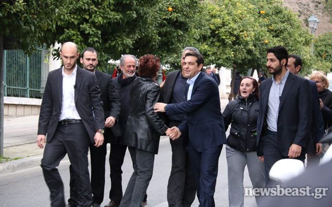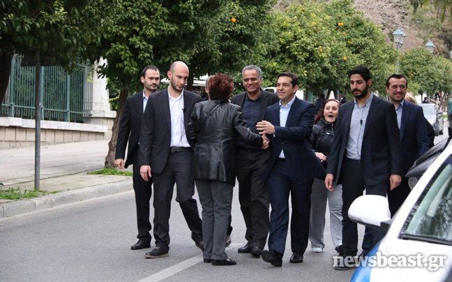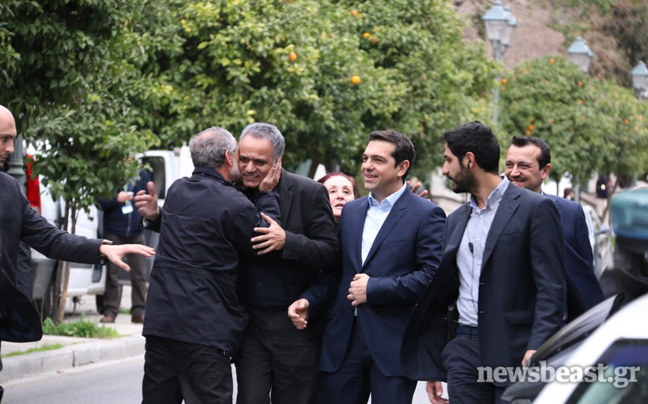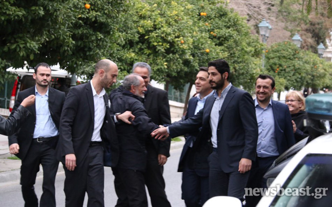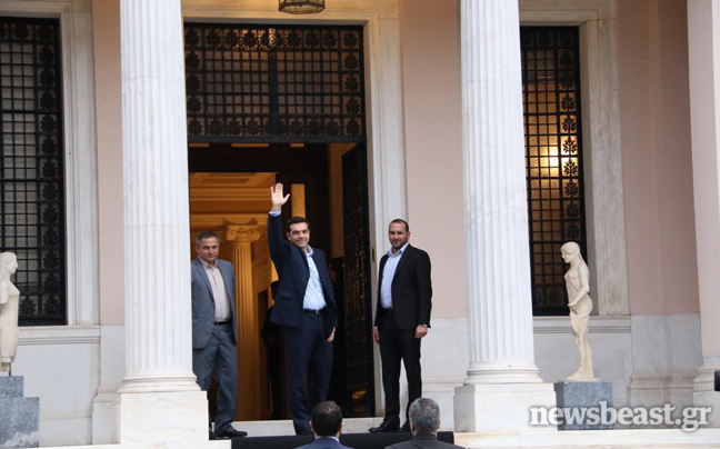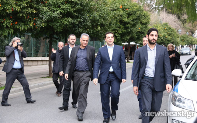 Συνοδευόμενος από τον Πάνο Σκουρλέτη και τον Νίκο Παππά, ο νέος πρωθυπουργός Αλέξης Τσίπρας πέρασε λίγο μετά τις 16:30 το κατώφλι του Μεγάρου Μαξίμου, προκειμένου να αναλάβει και επίσημα τα καθήκοντά του.