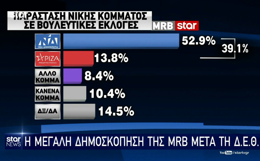 Το δεύτερο μέρος της δημοσκόπησης της MRB παρουσίασε το Star Channel το βράδυ της Τετάρτης στο κεντρικό δελτίο ειδήσεων του σταθμού μετά και την πραγματοποίηση της Διεθνούς Έκθεσης Θεσσαλονίκης.
