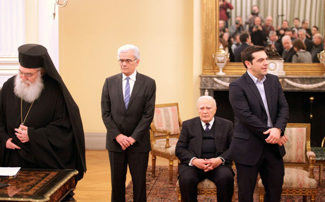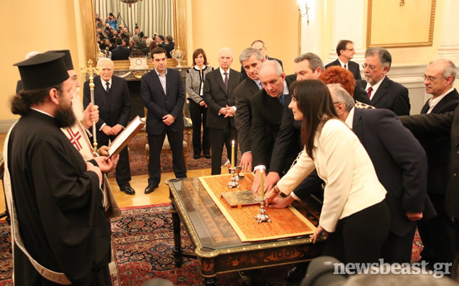 Το νέο υπουργικό συμβούλιο υπό τον Αλέξη Τσίπρα, ορκίστηκε σήμερα στο Προεδρικό Μέγαρο, σε μια τελετή που σημαδεύτηκε από το γεγονός ότι η πλειοψηφία των υπουργών, υφυπουργών και αναπληρωτών έδωσαν πολιτικό όρκο.