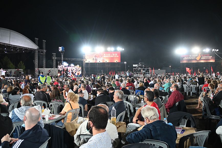 «Όταν πριν 30 χρόνια, λυσσομανούσαν όλοι – δεξιοί, φιλελεύθεροι, σοσιαλδημοκράτες, μετανοημένοι αριστεροί – πως “δεν υπάρχει άλλη εναλλακτική” πέρα από το γερασμένο καπιταλιστικό σύστημα, το ΚΚΕ κράτησε ψηλά την κόκκινη σημαία!” υπογράμμισε ο Δ. Κουτσούμπας προσθέτοντας ότι το ΚΚΕ “κρατήθηκε όρθιο, γιατί έμεινε πιστό στα “μεγάλα μεγέθη”, που μας υπενθύμισε ο μεγάλος Μίκης στην τελευταία του επιστολή. Και αυτά τα μεγάλα μεγέθη, της ιστορικής μας διαδρομής, αλλά κι όσα μεγάλα κατακτήσαμε αυτά τα 30 χρόνια, είναι που κρατάνε ζωντανή την ελπίδα και εμπνέουν την καθημερινή πάλη σήμερα».