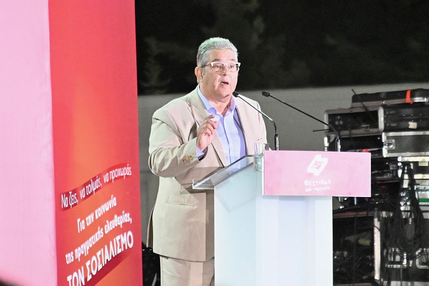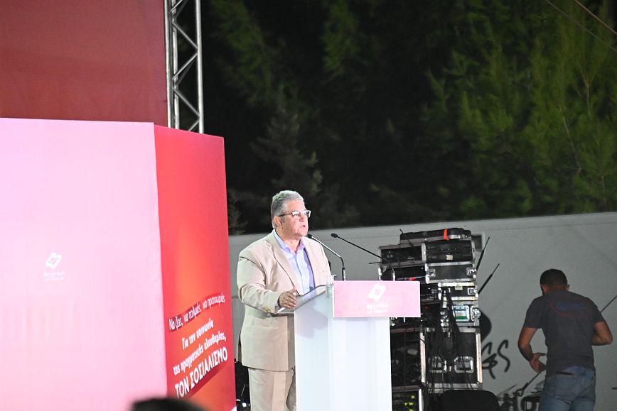 Μίλησε για κοινή στρατηγική “παρά τις επιμέρους διαφορές”, μεταξύ ΝΔ και ΣΥΡΙΖΑ και τόνισε: «Ο λαός πρέπει να τους πετάξει στα μούτρα αυτά τα ψεύτικα διλήμματα. Και το δίλημμα “Μητσοτάκης ή χάος” της ΝΔ και το δίλημμα “προοδευτική διακυβέρνηση ή Μητσοτάκης” του ΣΥΡΙΖΑ. Αποδείχθηκε ότι καμία τέτοια κυβέρνηση δεν μπορεί να βγει έξω από τις ράγες που καθορίζει η ανταγωνιστικότητα της καπιταλιστικής οικονομίας, η στρατηγική της ΕΕ κι η εξουσία του κεφαλαίου. Ο δε μύθος της δήθεν “προοδευτικής διακυβέρνησης” έχει χρεοκοπήσει σ’ όλη την Ευρώπη και στην Ελλάδα».