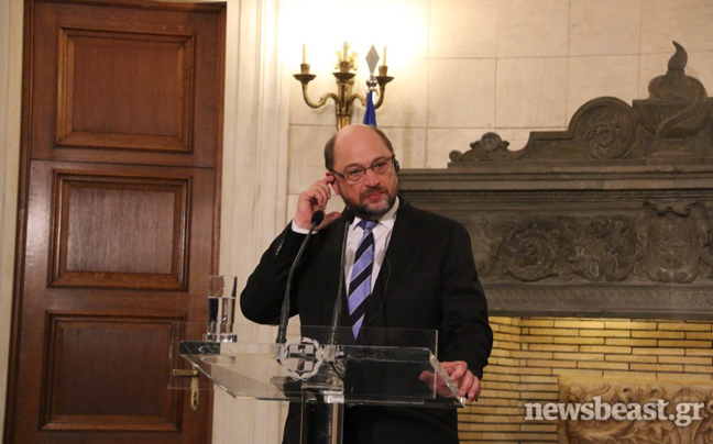 «Ο κ. Σουλτς έχει πολλές φορές αποδείξει ότι εκπροσωπεί επάξια τον κατ’ εξοχήν δημοκρατικό θεσμό της Ε.Ε.», επισήμανε.