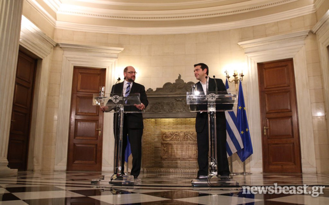 Κοινός μας στόχος είναι η επιστροφή στην ανάπτυξη, σημείωσε ο πρωθυπουργός, ενώ αναφερόμενος στη συνάντησή του με τον κ. Σουλτς έκανε λόγο για χρήσιμη και εποικοδομητική συζήτηση, που συμβάλει στη διαμόρφωση μιας νέας σχέσης εμπιστοσύνης ανάμεσα στη μεταμνημονιακή Ελλάδα και τους θεσμούς της Ε.Ε.