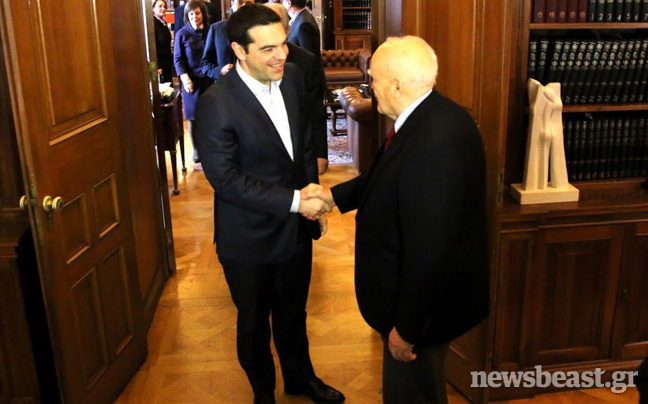 Στο Μέγαρο Μαξίμου βρίσκεται ο πρωθυπουργός Αλέξης Τσίπρας, προκειμένου να ενημερώσει και επισήμως τον Κάρολο Παπούλια για την επιλογή του Προκόπη Παυλόπουλου ως υποψήφιο για την Προεδρία, αλλά και για την πορεία της διαπραγμάτευσης με τους εταίρους.