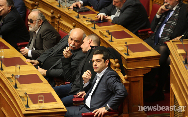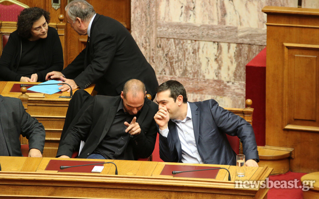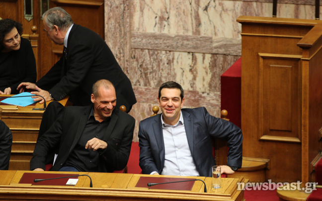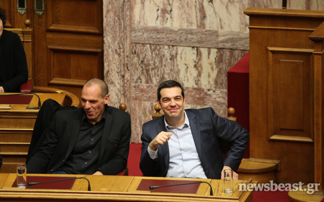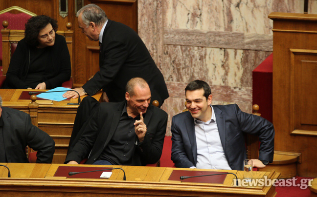 Όπως ήταν φυσικά τα φλας έπεσαν κυρίως στα κυβερνητικά έδρανα και ειδικότερα στον πρωθυπουργό Αλέξη Τσίπρα και τον υπουργό Οικονομικών, Γιάννη Βαρουφάκη που καθόντουσαν δίπλα και έδειχναν ιδιαίτερα ευδιάθετοι. Ο κ. Βαρουφάκης είχε συνομιλία τόσο με τον Τσίπρα, όσο και τον Βούτση.