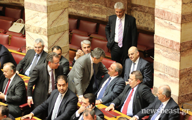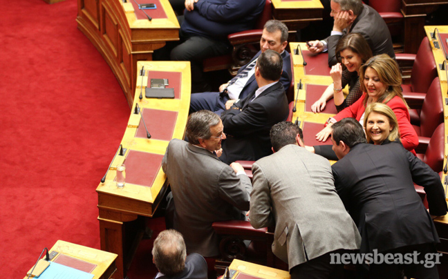Όπως ήταν αναμενόμενο, πριν ξεκινήσει η ψηφοφορία και ενώ αρκετοί βουλευτές βρίσκονταν στην αίθουσα, σχηματίστηκαν αρκετά «πηγαδάκια».