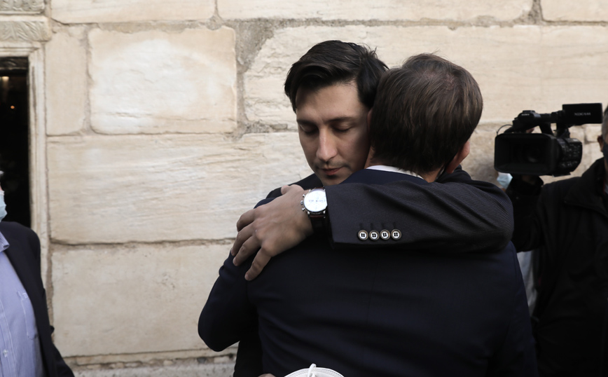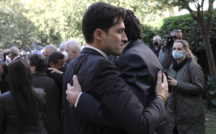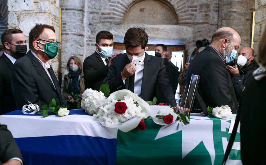 Στον προαύλιο χώρο της Μητρόπολης ο Παύλος Χρηστίδης αγκαλιάστηκε πολλές φορές βουρκωμένος με συντρόφους του, που επίσης ήταν θλιμμένοι για την ξαφνική απώλεια της προέδρου τους.