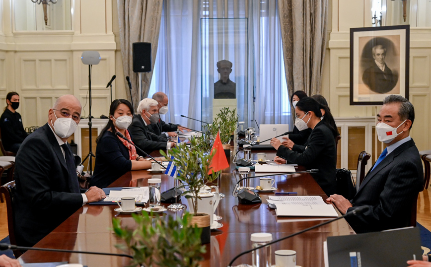 Τον κινέζο ομόλογό του Ουάνγκ Γι (Wang Yi) υποδέχθηκε σήμερα, Τετάρτη (27/10) στο υπουργείο Εξωτερικών ο υπουργός Εξωτερικών Νίκος Δένδιας.