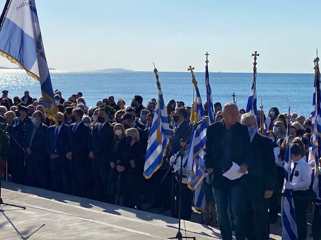 Ο πρωθυπουργός, παρακολούθησε την δοξολογία για την επέτειο του «Όχι» και στη συνέχεια έδωσε το παρών στο μνημόσυνο που έγινε στο μνημείο πεσόντων υποβρυχίων.