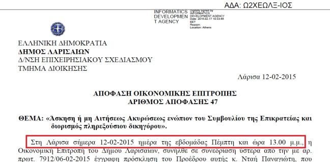 Για την ιστορία να αναθέσουμε πως ο πρώην υπουργός Διοικητικής Μεταρρύθμισης, του υπουργείου δηλαδή στο οποίο προΐσταται σήμερα ο κύριος Κατρούγκαλος είναι αυτό που έστειλε στον εισαγγελέα του πέντε δημάρχους, ανάμεσα στους οποίους και ο δήμαρχος Λαρισαίων κ. Καλογιάννης, για την υπόθεση της μη αποστολής των στοιχείων που ζητήθηκαν για τις μετατροπές των συμβάσεων.