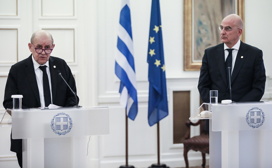 Ηχηρό μήνυμα «να ακολουθούσαν κι άλλα κράτη-μέλη της ΕΕ το παράδειγμα της Γαλλίας και να μην εξόπλιζαν χώρες που απειλούν με πόλεμο άλλες χώρες και κυρίως της ΕΕ», έστειλε μετά τη συνάντησή του με τον Γάλλο ομόλογό του Ζαν-Ιβ Λε Ντριάν, ο υπουργός Εξωτερικών Νίκος Δένδιας. «Θα ευχόμασταν κι άλλα κράτη-μέλη της ΕΕ να ακολουθούσαν το παράδειγμα της Γαλλίας και να μην εξόπλιζαν χώρες που απειλούν με πόλεμο άλλες χώρες και κυρίως χώρες της ΕΕ και που αποσταθεροποιούν με τη συμπεριφορά και την πρακτική τους την ευρύτερη περιοχή της Ανατολικής Μεσογείου, και βέβαια χώρες που δεν αποδέχονται το ευρωπαϊκό κεκτημένο είτε την UNCLOS και το Διεθνές Δίκαιο της Θάλασσας και είτε είναι υποψήφιες χώρες να ενταχθούν στο κοινό μας ευρωπαϊκό σπίτι, την ΕΕ» ανέφερε χαρακτηριστικά ο κ. Δένδιας.