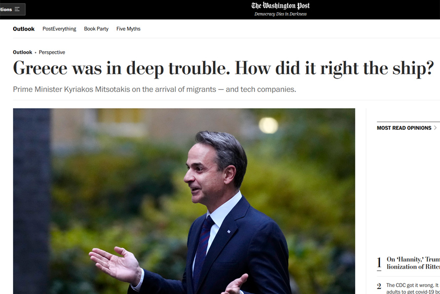 Μητσοτάκης στη Washington Post: Πιθανότατα θα δούμε την κορύφωση της πανδημίας στην Ελλάδα μέχρι τα μέσα Δεκεμβρίου