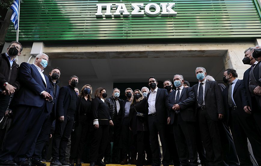 Μετά το 40ημερο μνημόσυνο της Φώφης Γεννηματά, παρουσιάστηκε η νέα πρόσοψη που κυριαρχεί το πράσινο χρώμα ενώ είναι το σήμα του ΠΑΣΟΚ και του Κινήματος Αλλαγής.