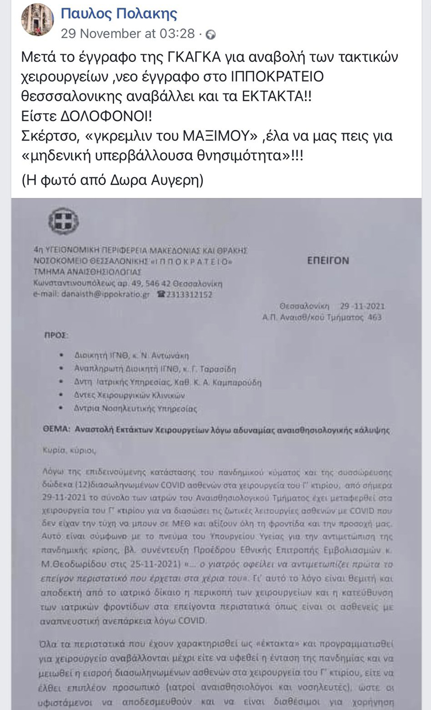 Στη ΝΔ αναφέρουν πως: «Προς κ. Τσίπρα: Κι άλλος είχε μιλήσει με την ίδια γλώσσα αλλά δεν διαγράφηκε. Προφανώς το «alter ego» έχει άλλη αντιμετώπιση», προσθέτοντας την ακόλουθη ανάρτηση του Παύλου Πολάκη.