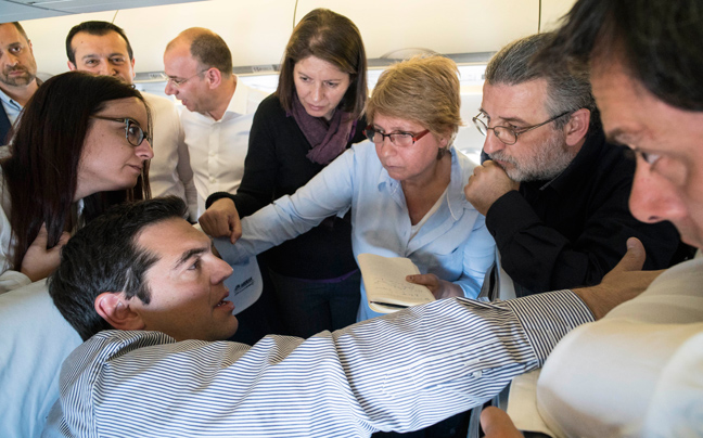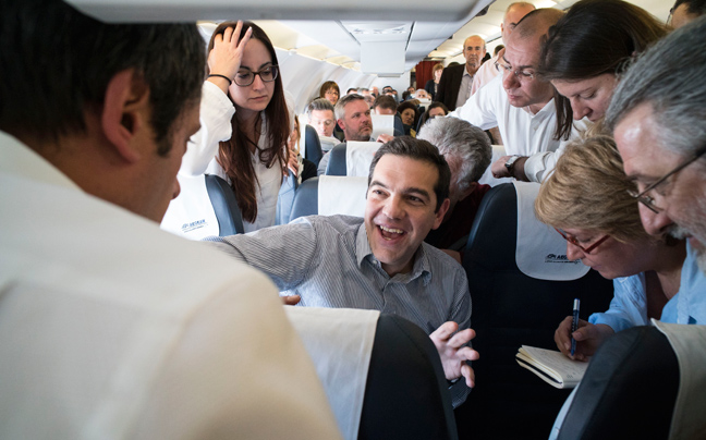 Στο ίδιο αεροπλάνο με προορισμό τις Βρυξέλλες βρέθηκαν και οι πολιτικοί συντάκτες διαφόρων μέσων ενημέρωσης οι οποίοι είχαν ένα τετ α τετ με τον πρωθυπουργό.