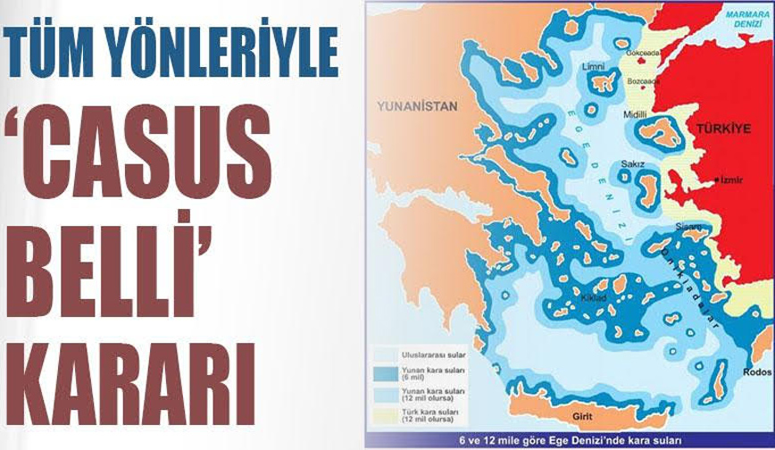 Τη δική της εξήγηση για το casus belli (σ.σ. αιτία πολέμου) με το οποίο απειλεί η γειτονική χώρα την Ελλάδα, δίνει σημερινό δημοσίευμα της εφημερίδας Aydinlik στο πρωτοσέλιδό της. Σύμφωνα με αυτό, η χώρα μας μετά την επέκταση των χωρικών υδάτων στα 12 ναυτικά μίλια στο Ιόνιο πέλαγος που ανακοίνωσε η κυβέρνηση Μητσοτάκη πριν από περίπου ένα χρόνο, ετοιμάζεται τώρα να προβεί σε μια ανάλογη κίνηση και στο Αιγαίο, τη «Θάλασσα των Νησιών, όπως την αποκαλεί.