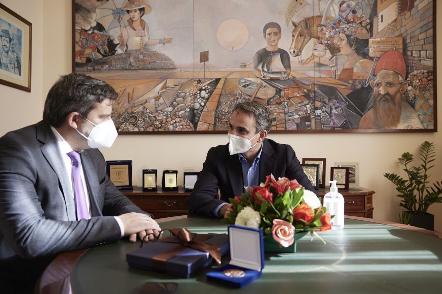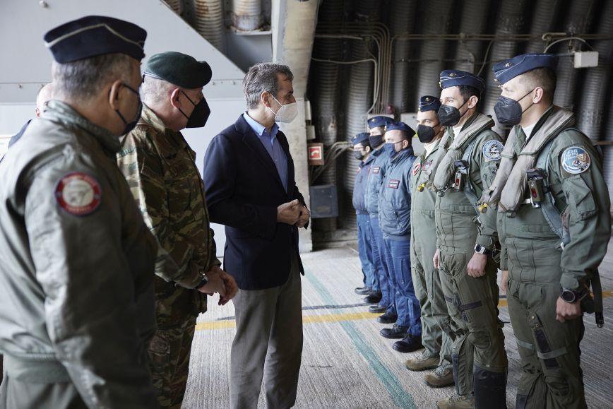 Ο Κυριάκος Μητσοτάκης ενημερώθηκε για τη λειτουργία της 130ΣΜ της Πολεμικής Αεροπορίας, από τον Αρχηγό του Γενικού Επιτελείου Εθνικής Άμυνας, Στρατηγό Κωνσταντίνο Φλώρο και τον Διοικητή της, Σμήναρχο Γρηγόρη Καραμπιτιάνη.