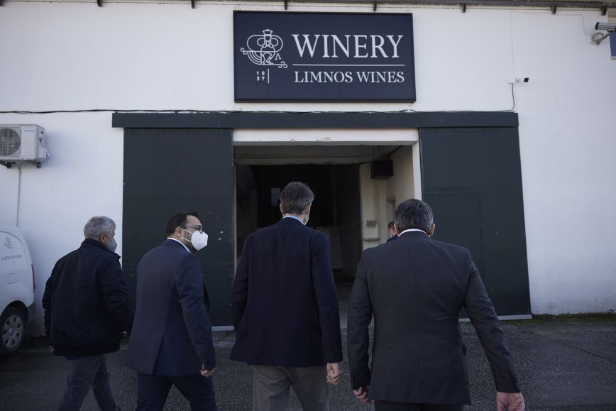 Στο πλαίσιο της επίσκεψής του στη Λήμνο, ο Κυριάκος Μητσοτάκης επισκέφθηκε επίσης το οινοποιείο του Αγροτικού Συνεταιρισμού Λήμνου, όπου είχε την ευκαιρία να ξεναγηθεί στη μονάδα παραγωγής κρασιού, ενώ βρέθηκε και σε πρωτοποριακό, οικογενειακό, οινοποιείο του νησιού, που προσφέρει στους επισκέπτες του κτήματος τη δυνατότητα να δοκιμάσουν τα κρασιά που παράγει.