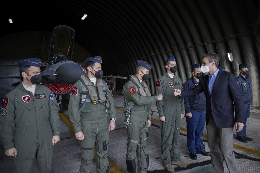 Στην 130 Σμηναρχία Μάχης της Πολεμικής Αεροπορίας, που βρίσκεται στη Λήμνο, ο Κυριάκος Μητσοτάκης ευχήθηκε χρόνια πολλά και καλή χρονιά στις γυναίκες και τους άνδρες της Πολεμικής μας Αεροπορίας που υπερασπίζονται καθημερινά την Πατρίδα και τους ευχαρίστησε για τις πολύτιμες υπηρεσίες που προσφέρουν.