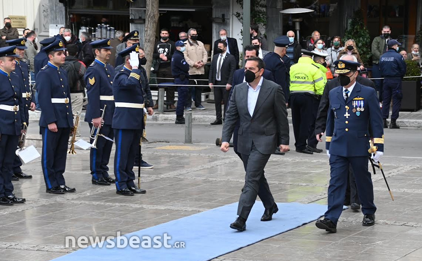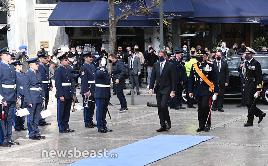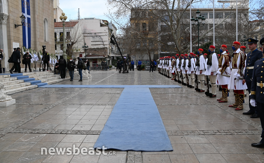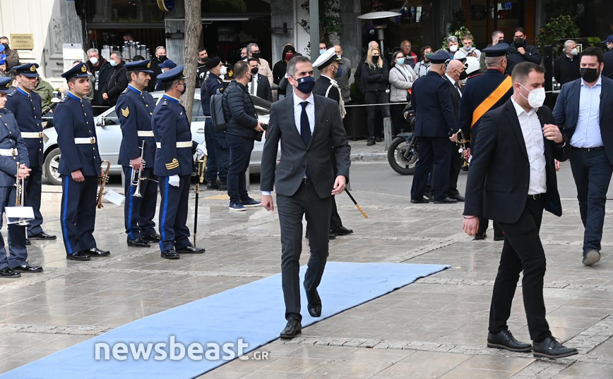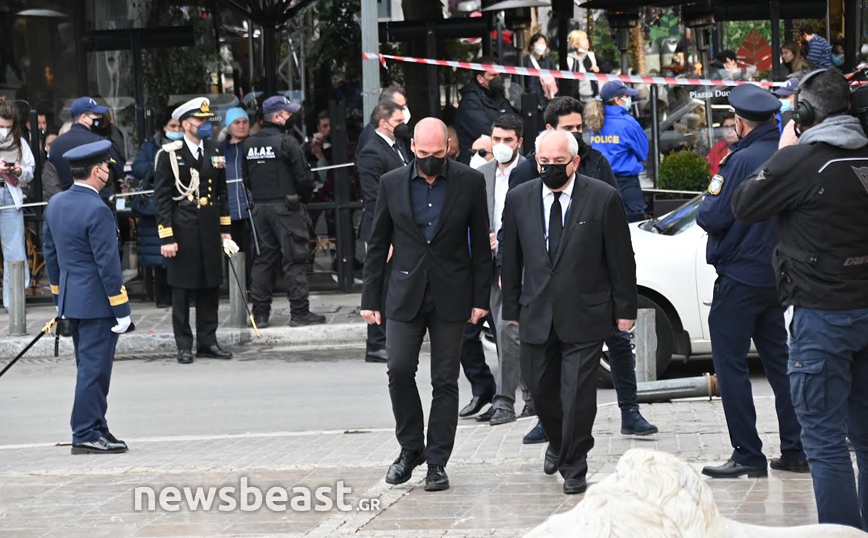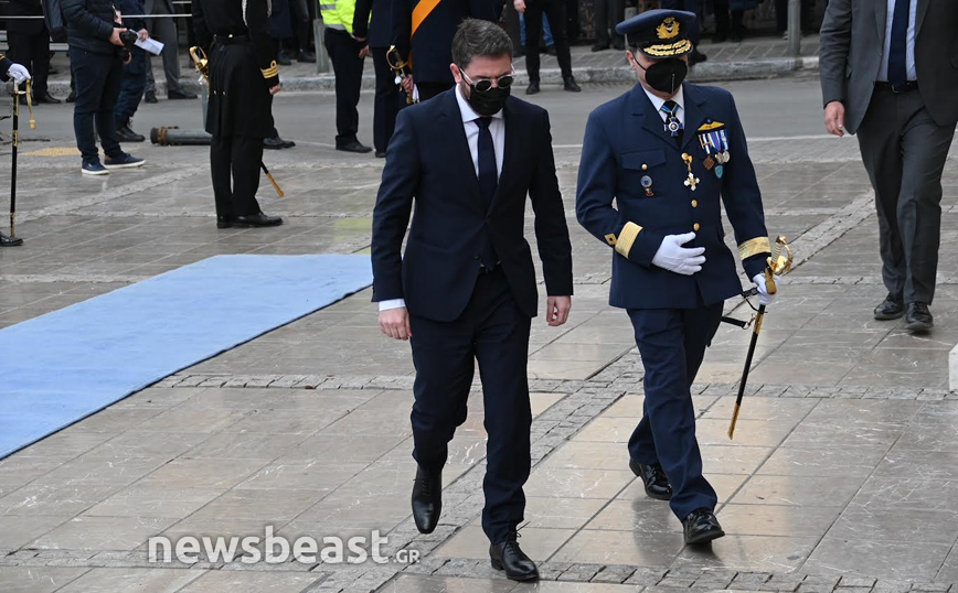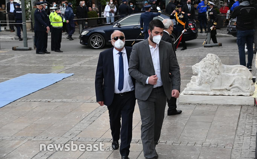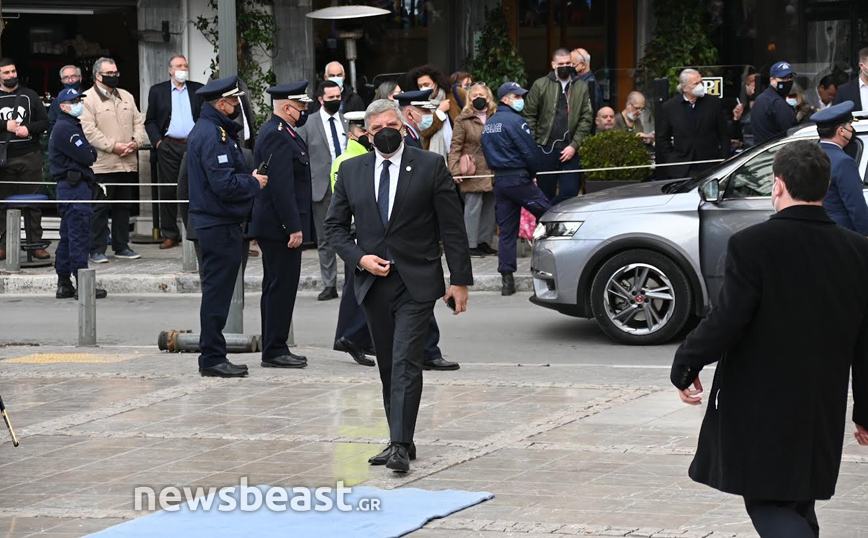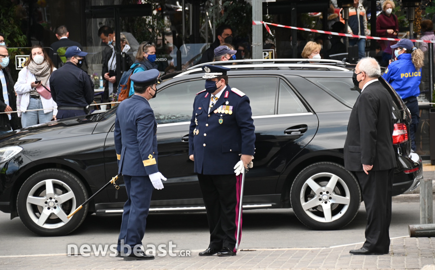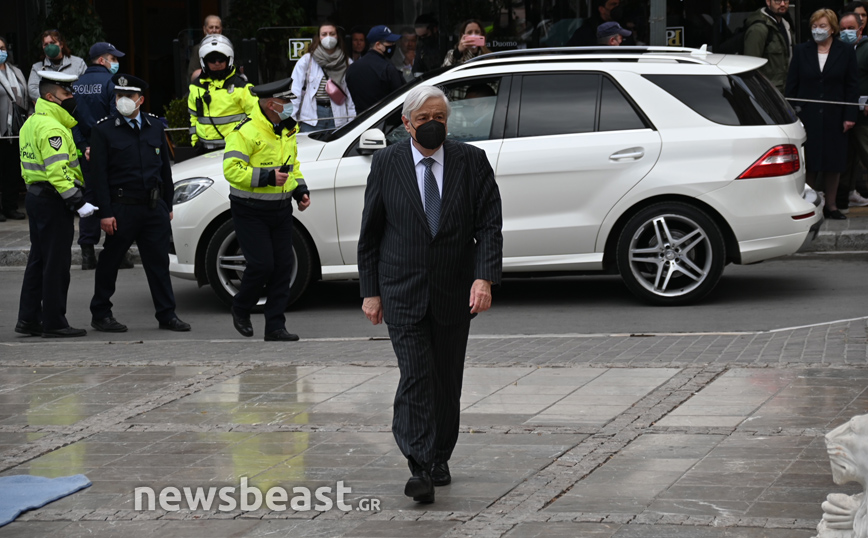 Η Πρόεδρος της Δημοκρατίας Κατερίνα Σακελλαροπούλου έφτασε, κρατώντας ένα λευκό τριαντάφυλλο στα χέρια.