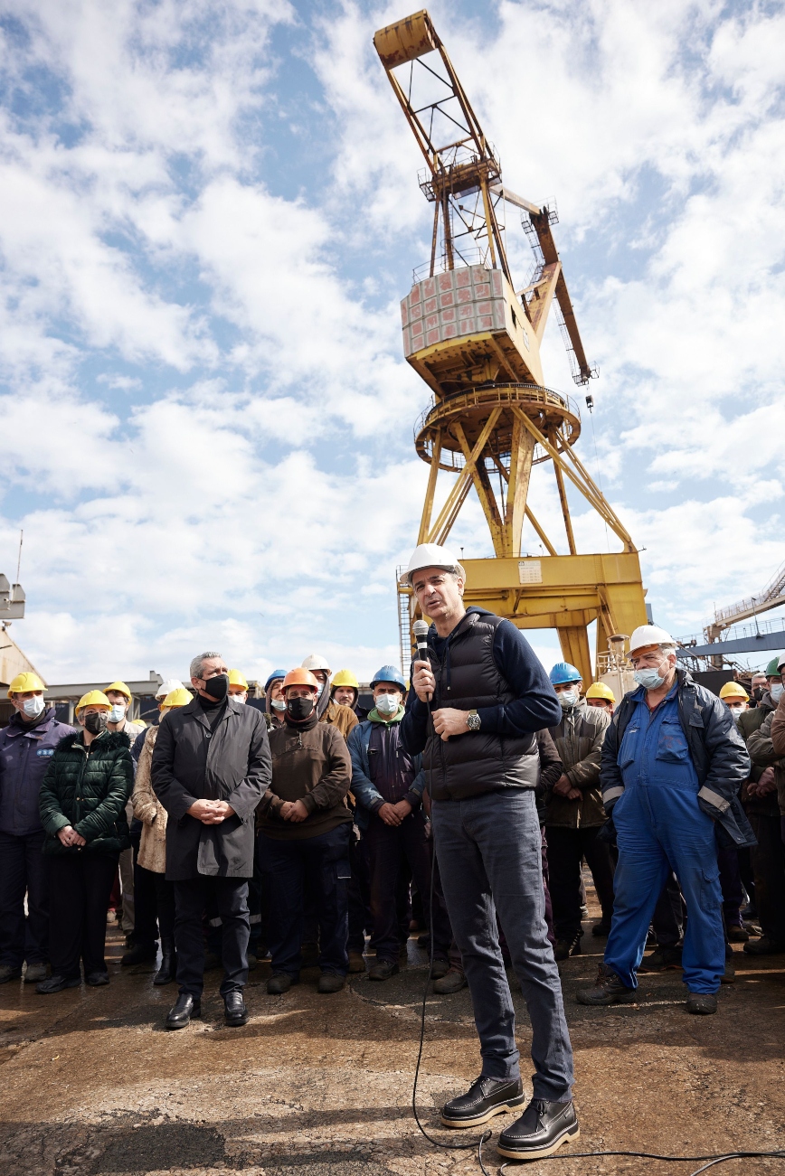 Ο Κυριάκος Μητσοτάκης αναφέρθηκε και πάλι στο Νεώριο, όπου μετά τις ενέργειες που έγιναν για τη διάσωσή του εργάζονται πλέον 600 εργαζόμενοι.