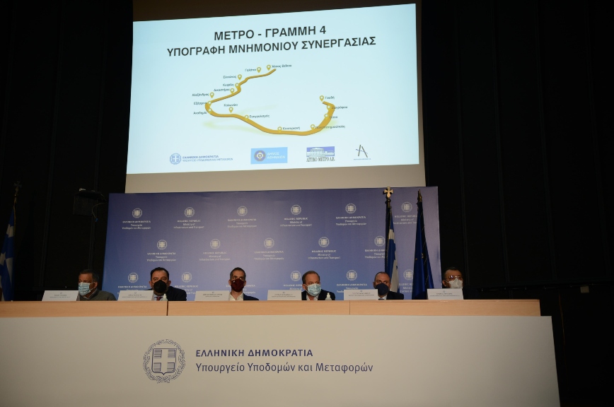 Το μνημόνιο συνεργασίας για τη Γραμμή 4 του Μετρό της Αθήνας υπεγράφη στο Υπουργείο, από τον αρμόδιο υπουργό Κώστα Καραμανλή, τον δήμαρχο Αθηναίων Κώστα Μπακογιάννη, τον διευθύνοντα δύμβουλο της Αττικό Μετρό ΑΕ, Νίκο Κουρέτα και τον διευθύνοντα δύμβουλο της Ανάπλασης Αθήνας ΑΕ, Χρόνη Ακριτίδη. Το παρών στην εκδήλωση έδωσαν επίσης ο Υφυπουργός Υποδομών, Γιώργος Καραγιάννης και ο Πρόεδρος της Αττικό Μετρό ΑΕ, Νίκος Ταχιάος.