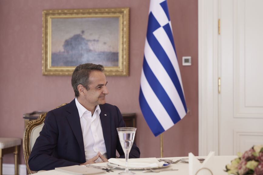 Έναν σύντομο διάλογο είχε ο Κυριάκος Μητσοτάκης με τον Ρετζέπ Ταγίπ Ερντογάν, λίγο μετά την άφιξή του στην προεδρική κατοικία για την συνάντηση των δυο ηγετών και λίγο πριν ξεκινήσει το γεύμα.