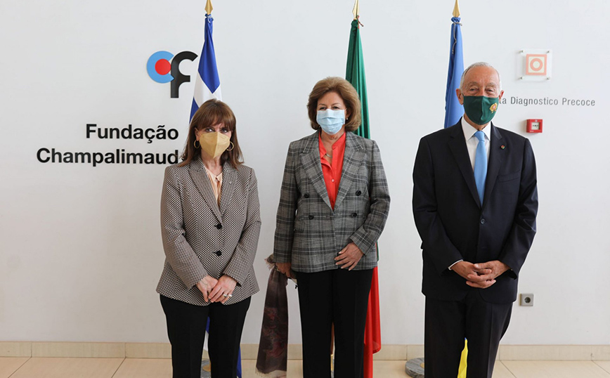 Στη συνέχεια, η αρχηγός του κράτους επισκέφθηκε το Ίδρυμα Έρευνας κατά του Καρκίνου Champalimaud, όπου την υποδέχθηκαν ο Πρόεδρος της Πορτογαλικής Δημοκρατίας Marcelο Rebelo de Sousa και η επικεφαλής του Ιδρύματος Leonor Beleza. Η κυρία Σακελλαροπούλου ξεναγήθηκε στις εγκαταστάσεις του καινοτόμου κέντρου, συνομίλησε με ερευνητές και ενημερώθηκε για την επιστημονική έρευνα και τα σχετικά ερευνητικά προγράμματα.