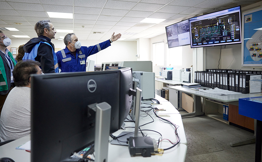 Στις εγκαταστάσεις του ΔΕΣΦΑ στη Ρεβυθούσα ξεναγήθηκε το πρωί ο πρωθυπουργός, ο οποίος συνοδευόταν από τον υπουργό Ενέργειας και Περιβάλλοντος, Κώστα Σκρέκα.