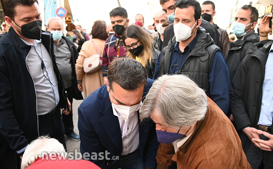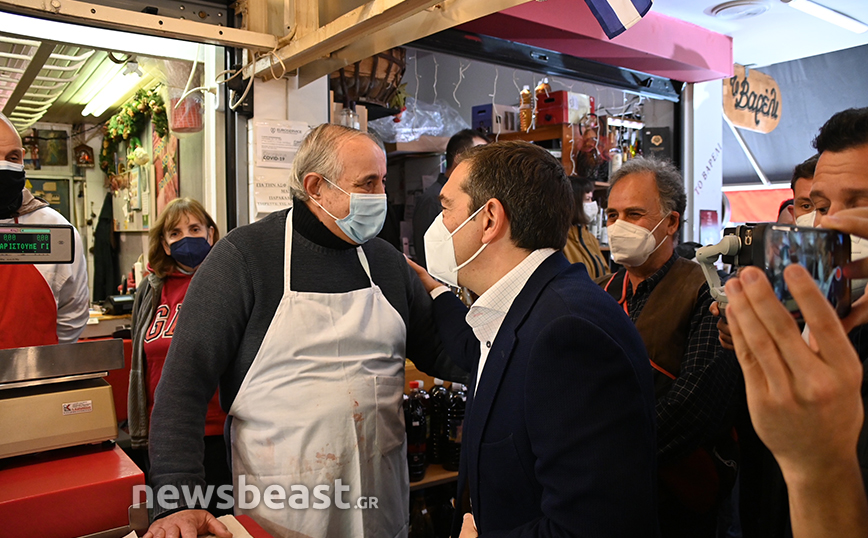 Οι καταστηματάρχες υποδέχτηκαν θερμά τον πρόεδρο του ΣΥΡΙΖΑ και του μίλησαν για τα προβλήματα που αντιμετωπίζουν λόγω της ακρίβειας που τους έχει φτάσει πια στα όριά τους.