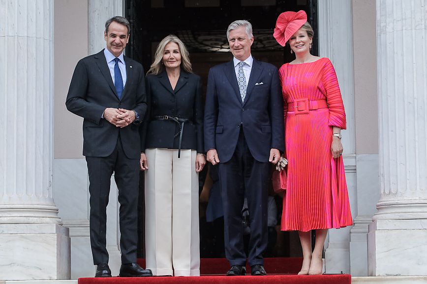 Ο Πρωθυπουργός Κυριάκος Μητσοτάκης υποδέχθηκε σήμερα, με τη σύζυγό του Μαρέβα Γκραμπόφσκι-Μητσοτάκη, τον Βασιλιά των Βέλγων Philippe και τη Βασίλισσα Mathilde, οι οποίοι πραγματοποιούν επίσημη επίσκεψη στην Ελλάδα.