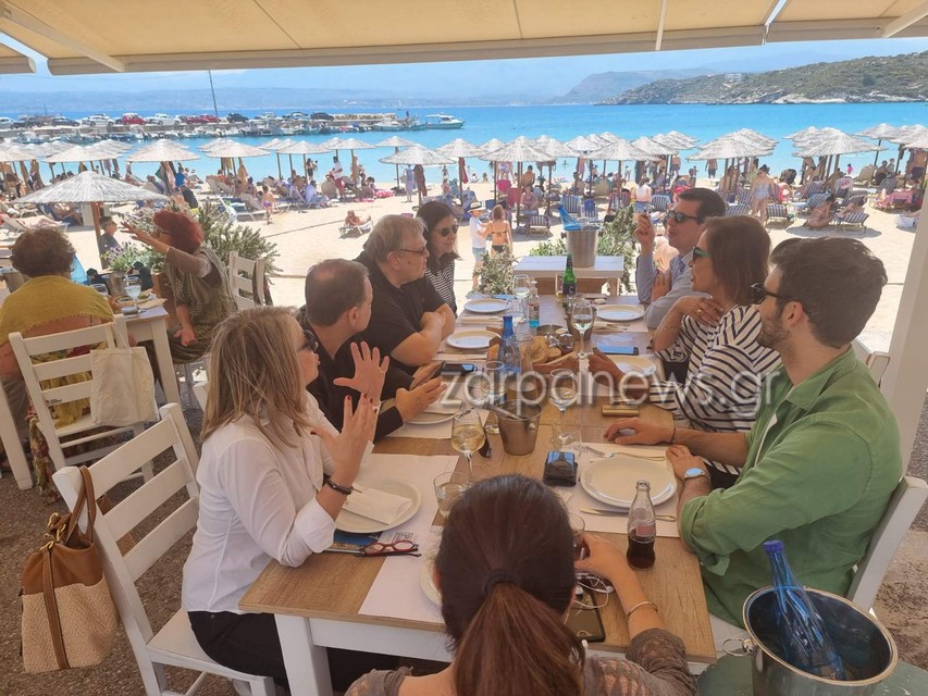 Η παραλία ήταν γεμάτη από λουόμενους και το γεύμα, σύμφωνα με το zarpanews.gr, εξελίχθηκε σε χαλαρό κλίμα και καλοκαιρινή διάθεση.
