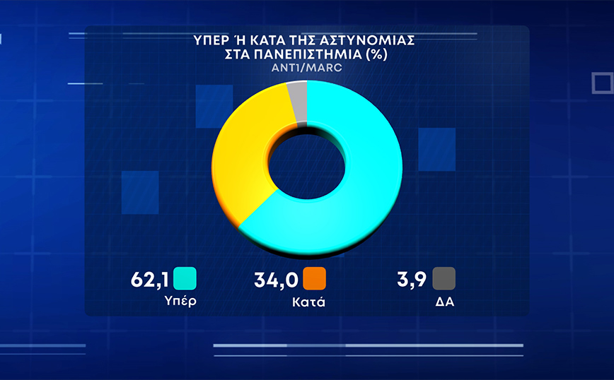 Για την πανεπιστημιακή αστυνομία το 62,1% είναι υπέρ, το 34% κατά και το 3,9% δεν απάντησε.