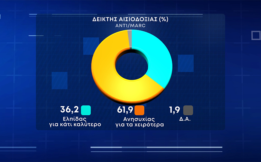 Στον δείκτη αισιοδοξίας το 61,9% των πολιτών ανησυχεί πως έρχονται τα χειρότερα, έναντι 36,2% που βλέπει ελπίδα για κάτι καλύτερο.