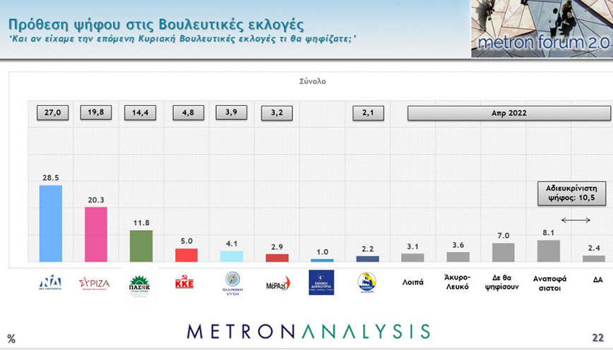 Αξιοσημείωτο είναι ότι η αδιευκρίνιστη ψήφος φτάνει το 10,5%.