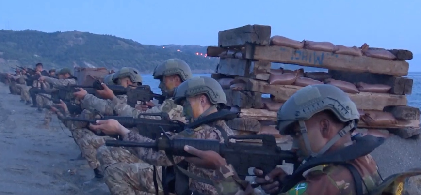 Στο σχετικό οπτικό υλικό αποτυπώνονται οπλίτες να μεταβαίνουν με φουσκωτά σε απομακρυσμένες παραλίες νησιών και βραχονησίδων και με τα όπλα παρατεταμένα να προβαίνουν σε επίθεση.