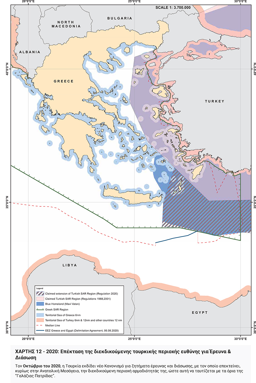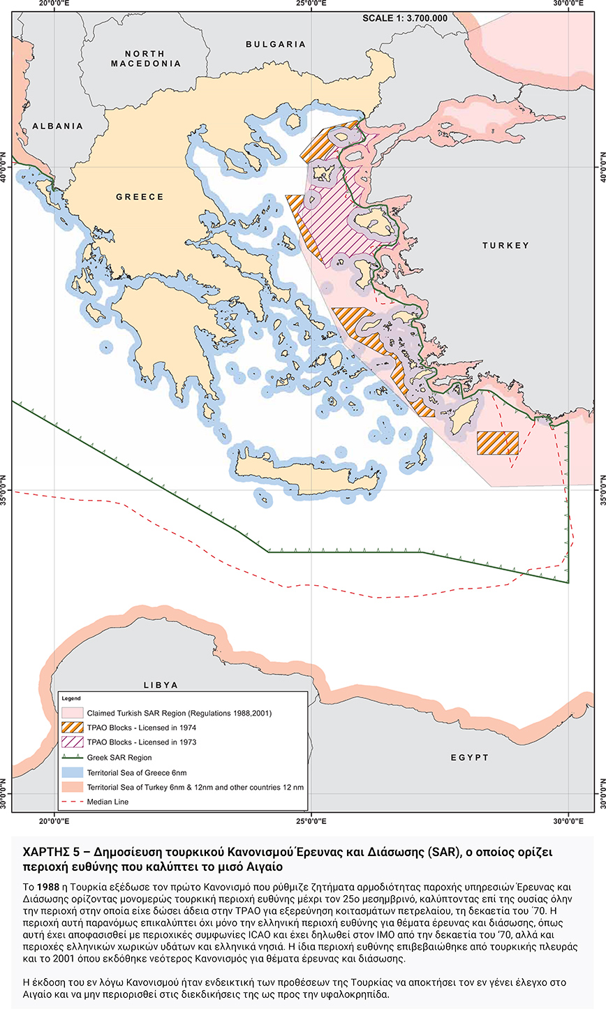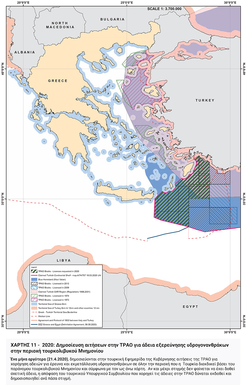 Νωρίτερα την Πέμπτη, το ελληνικό υπουργείο Εξωτερικών είχε απαντήσει με 16 χάρτες στον τουρκικό αναθεωρητισμό, τονίζοντας πως οι χάρτες αυτοί τεκμηριώνουν την έκταση του τουρκικού αναθεωρητισμού με σκοπό την ανατροπή του status quo, παραβιάζοντας το Διεθνές Δίκαιο και το Διεθνές Δίκαιο της Θάλασσας, απειλώντας την ειρήνη, την ασφάλεια και τη σταθερότητα στην περιοχή μας.
