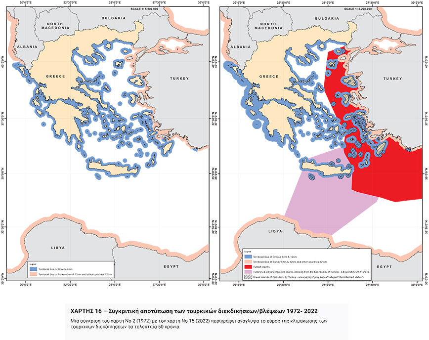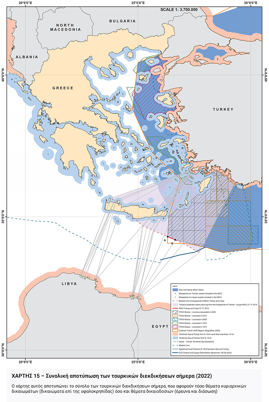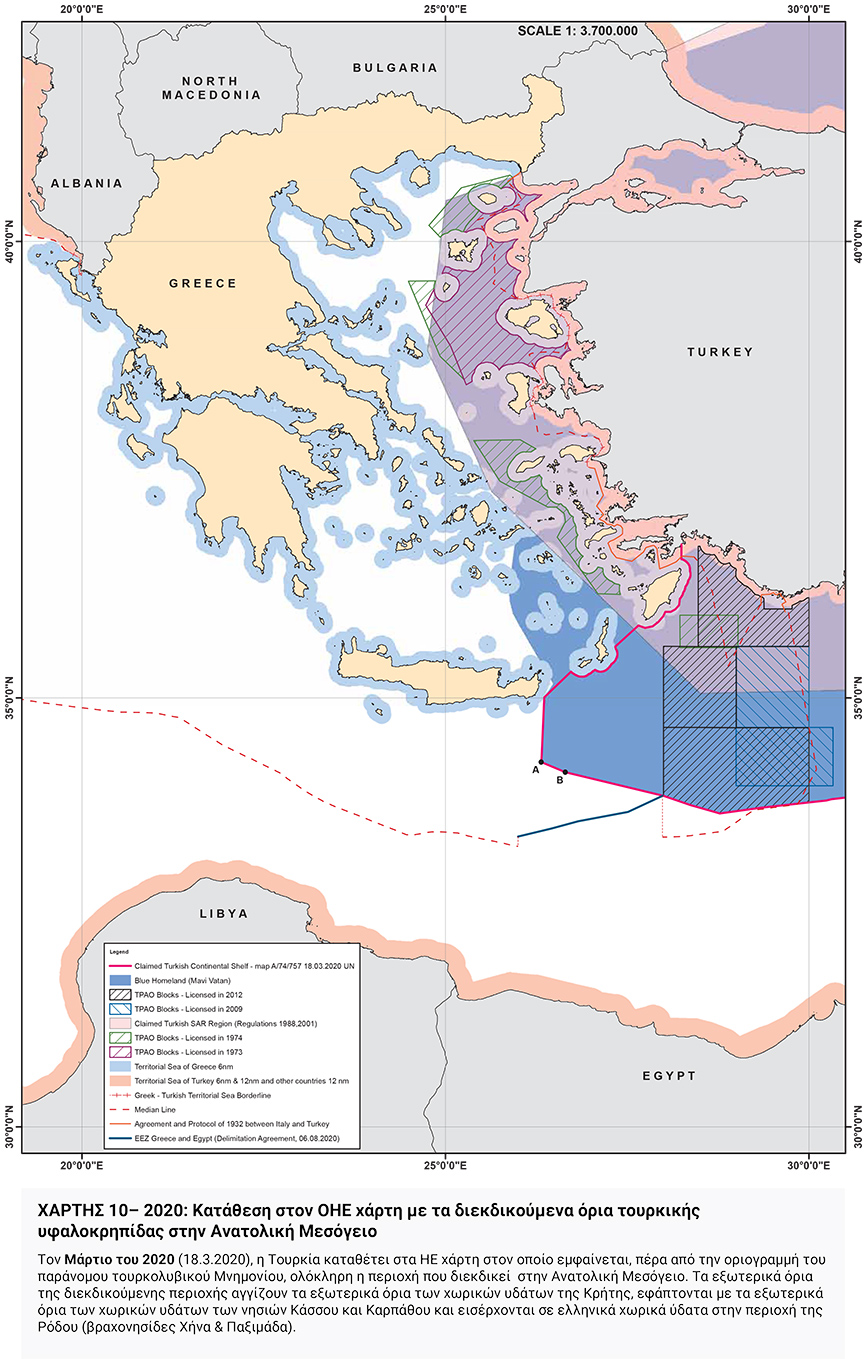 Νωρίτερα την Πέμπτη, το ελληνικό υπουργείο Εξωτερικών είχε απαντήσει με 16 χάρτες στον τουρκικό αναθεωρητισμό, τονίζοντας πως οι χάρτες αυτοί τεκμηριώνουν την έκταση του τουρκικού αναθεωρητισμού με σκοπό την ανατροπή του status quo, παραβιάζοντας το Διεθνές Δίκαιο και το Διεθνές Δίκαιο της Θάλασσας, απειλώντας την ειρήνη, την ασφάλεια και τη σταθερότητα στην περιοχή μας.
