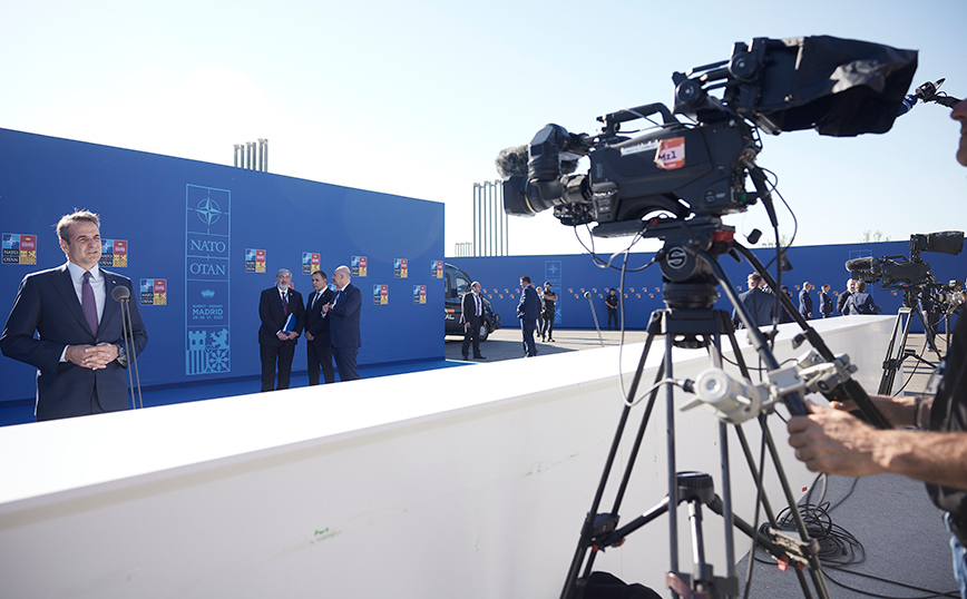 «Θέλω να εκφράσω την ικανοποίησή μου γιατί στο νέο στρατηγικό δόγμα του ΝΑΤΟ, το οποίο θα υιοθετήσουμε σε λίγο, στην εισαγωγή του συμπεριλαμβάνεται η προστασία της κυριαρχίας της εδαφικής ακεραιότητας, του Διεθνούς Δικαίου, αλλά και των ανθρωπίνων δικαιωμάτων, ώς αξιακό πλαίσιο πάνω στο οποίο στηρίζεται η Συμμαχία μας», δήλωσε ο πρωθυπουργός Κυριάκος Μητσοτάκης, προσερχόμενος στο RECINTO FERIAL IFEMA της Μαδρίτης, για να πάρει μέρος στις διήμερες εργασίες της Συνόδου Κορυφής του ΝΑΤΟ.