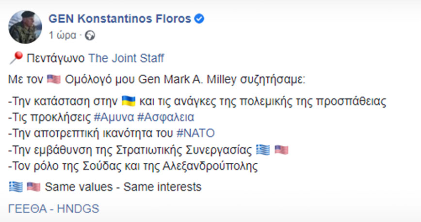 Μάλιστα, σε ανάρτηση που έκανε στο Facebook o αρχηγός ΓΕΕΘΑ σημείωσε το εξής: