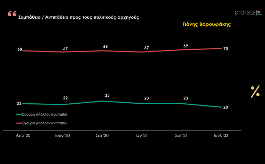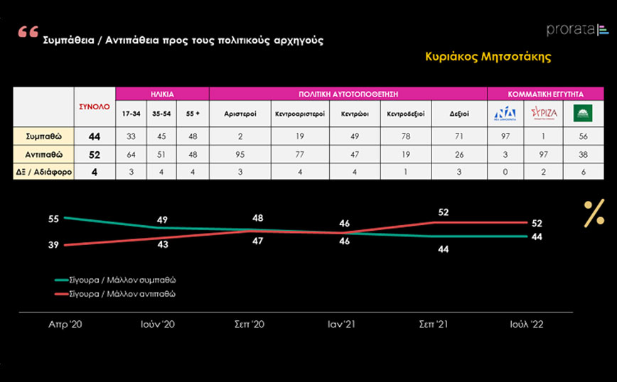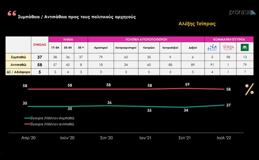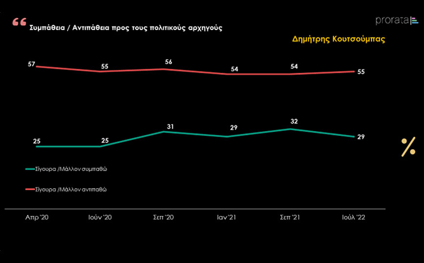Στη δημοσκόπηση της Prorata αποτυπώθηκε το πόσο συμπαθούν και πόσο αντιπαθούν τους πολιτικούς αρχηγούς οι Έλληνες.
