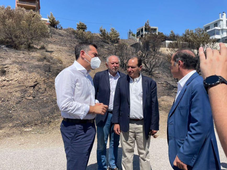 Ο πρόεδρος του ΣΥΡΙΖΑ έκανε περιοδεία στο Ντράφι και την Παλλήνη, που βρέθηκαν στο μέτωπο της καταστροφικής πυρκαγιάς τις προηγούμενες ημέρες και είχε επαφές με ανθρώπους που είδαν τις περιουσίες τους να καταστρέφονται. Στη συνέχεια είχε σύσκεψη με τον δήμαρχο και τοπικούς φορείς.